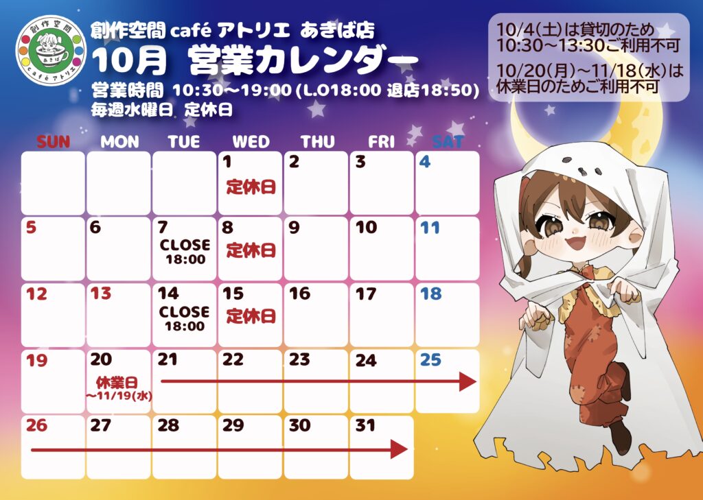 10/20(月)〜11/20(木)はコラボカフェ期間の為、通常のご利用ができません。